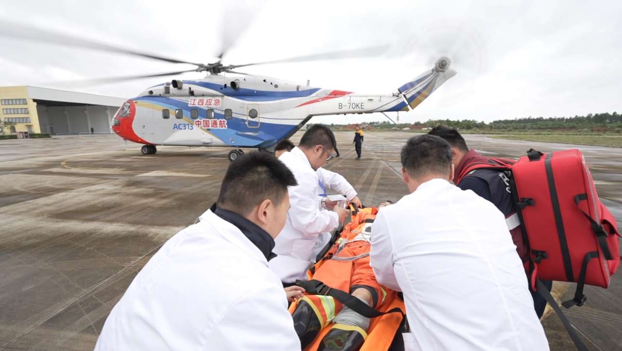 据了解,在江西省应急管理厅的组织下,“森林火灾”演练现场,接到江西省航空护林局救援指令的“急救(转运)直升机”迅即飞抵靖安机场,快速用担架把2名重伤员转移到“直升机机载医疗救护装备”上,在现场和转运途中连续实施“呼吸、监护和输注”等高级生命支持,机上伤员医疗数据信息与急救中心远程实时交互,有效保障了伤员生命安全;在“洪涝灾害”演练现场,受领应急救援“4名村民受伤”任务的“急救(转运)直升机”,在转运途中对伤员实施了“呼吸、监护和除颤”等救治措施,实现了“上机即入院”的救治模式,及时挽救了4名村民的宝贵生命。